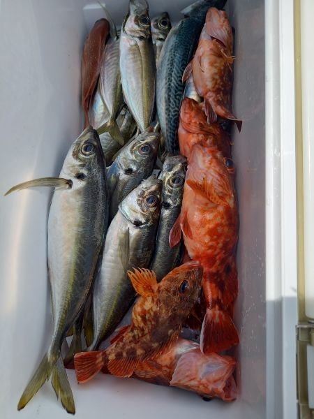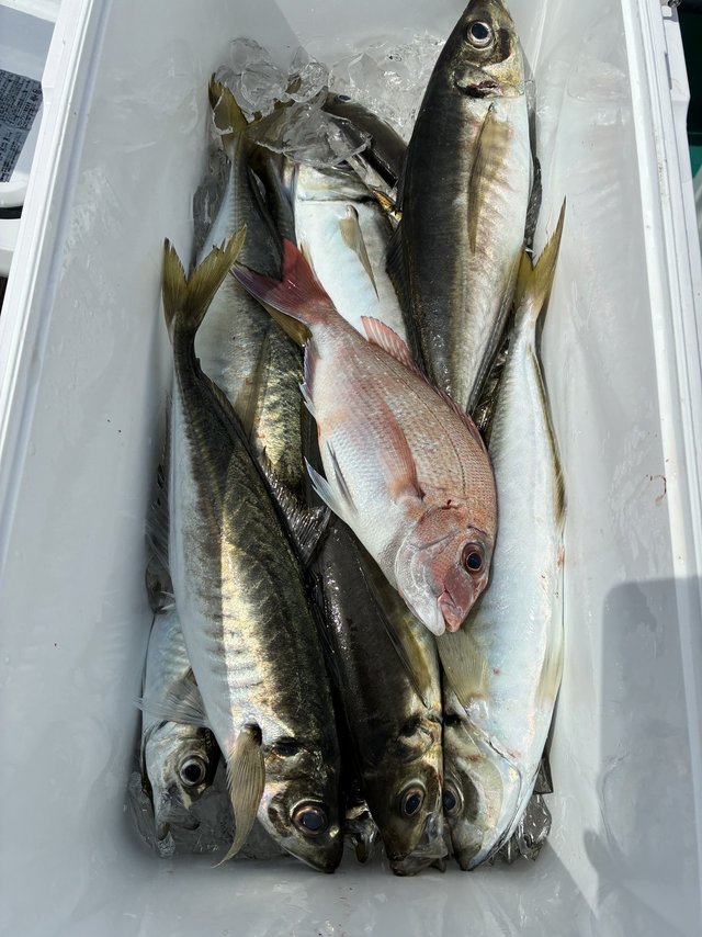 (マアジ)40~45cm 合計7匹 アジ(マアジ) 26~30cm 合計6匹 タイ 50cm 合計1匹 マサバ 40~48cm 合計19匹 ありがとうございました!