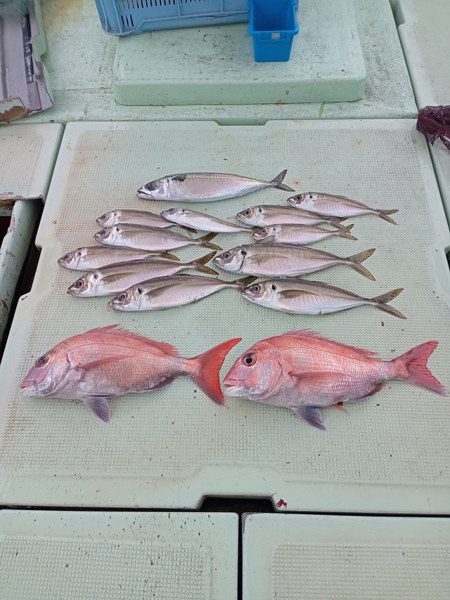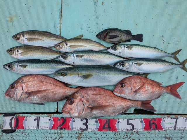 (マアジ)28~42cm 合計6匹 タイ 32~52cm 合計4匹 マサバ 39~45cm 合計10匹 ありがとうございました!