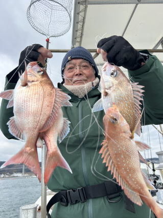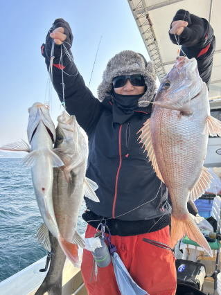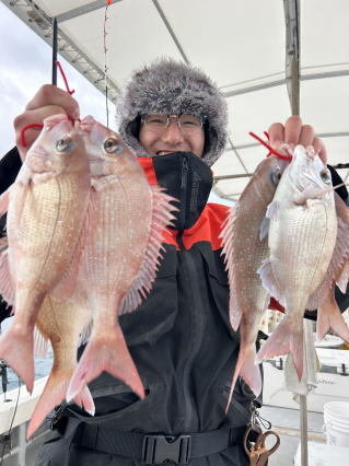 マダイ イサキ ハマチ 3名様ゆったりと出船。