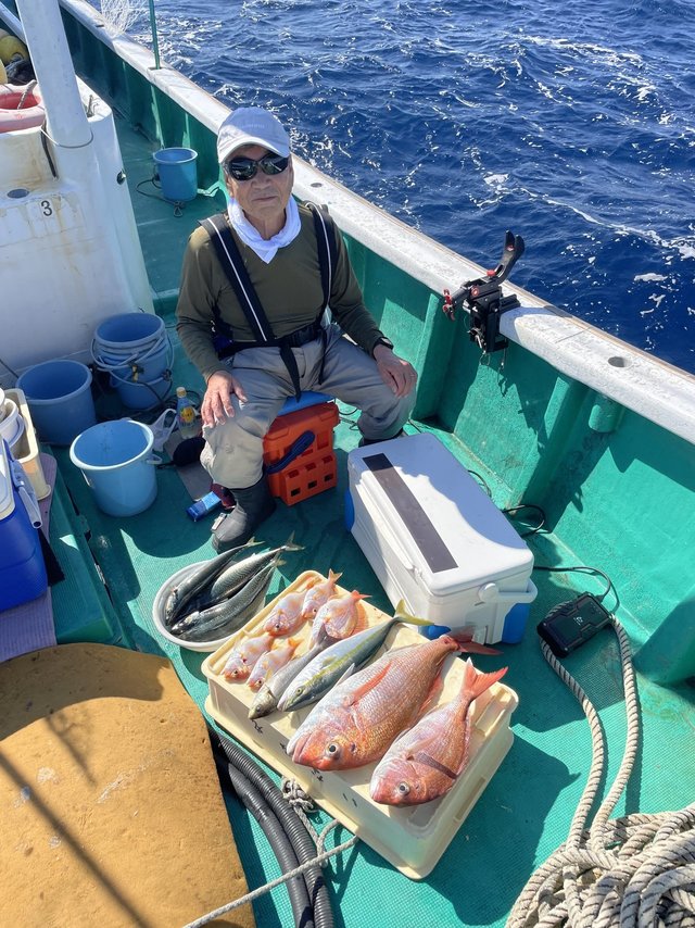 (ロウニンアジ)マダイ 30~40cm 合計3匹 チダイ レンコダイ サバ ツバス イサギ 今日はまだいい凪でした。 マダイ、チダイ、レンコダイ、サバ、メッキ、ツバス、イサギなどでした。 今日はサバ多かったです。