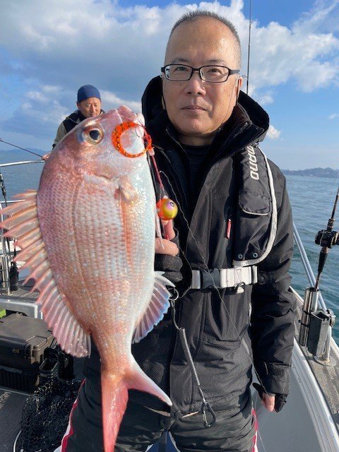 アコウ チヌ 2025年の釣り納めは、12月30日に友人と2人で一つテンヤに行ってきました。 潮は若潮で、全体的に流れは弱め。 ただ午前中は満ち潮がまだ効いていて、潮の流れに船を乗せながら釣ることで、うまく真鯛を拾っていくことができました。 午後からは潮の向きが変わり、反応も変化。 そこでポイントを移動し、状況に合わせた釣りを展開することで、引き続きコンスタントにヒットしてくれました。 今回は活き海老を使用。 食いも非常によく、追い食いをしっかり待ってから合わせることで、良型の真鯛を何枚もキャッチできました。 終盤にはヒラメもヒットしましたが、船縁で掬い損ねてしまい……それだけが心残りです。
