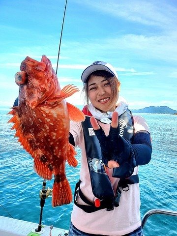 マダイ サワラ シマフグ アオハタ ヤズ ヒラマサ ハガツオ 底潮はスカスカ根魚も口を使わない状態で苦戦。 潮止まりまえに活性あがり全員安打となりました。 ハガツオはまだ少ないのか一本だけでした 。 魚が釣れなくて自分の手を釣った方がいました アシスト、テールフック付けてる時は網のなかでまず魚から針を外して下さい。 ジグもって魚が暴れて自爆テロになったようです。