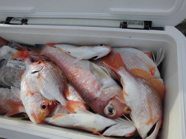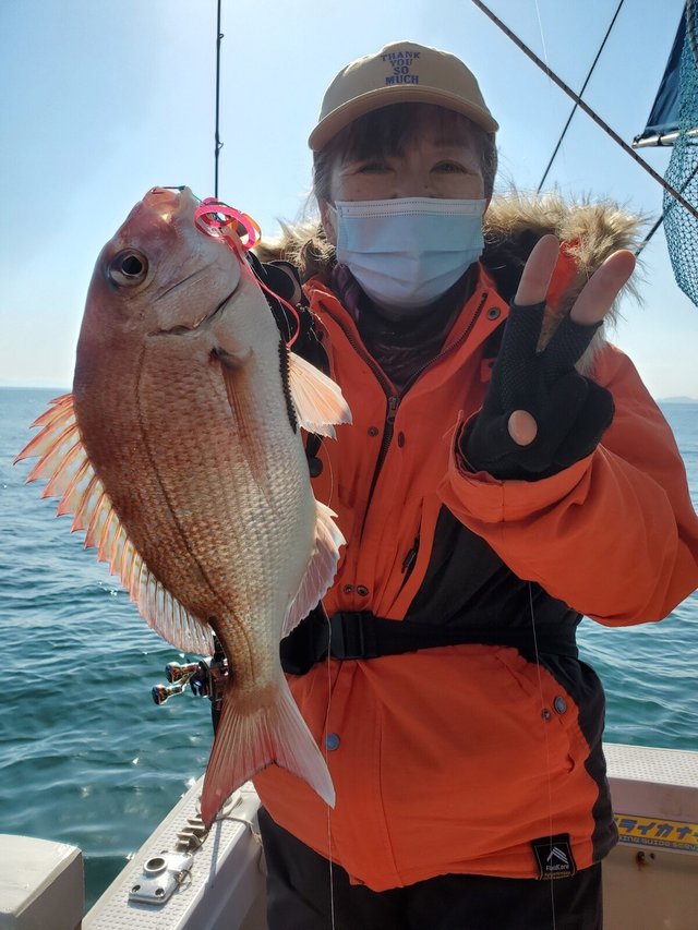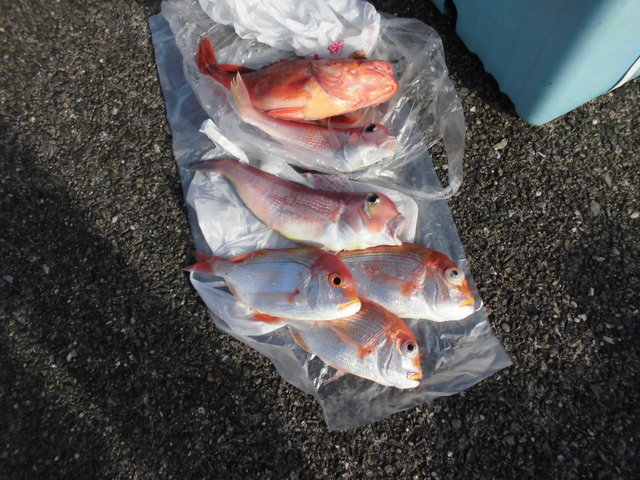マダイ 竿頭5匹 本日は鯛オンリーで出船 昨日の事もあり楽勝をかましてたら。 反応鈍い中り少ない。 潮かわりポイントかえてなんとかなりました。 50弱を連続4ヒットには恐れ入りました。 初めての女性の方も鯛もウッカリも釣られました。 次回は道具も揃えてチャレンジしてください トップ5匹良型揃い! 写真は恥ずかしがりやさんばっかりなので少なめ。