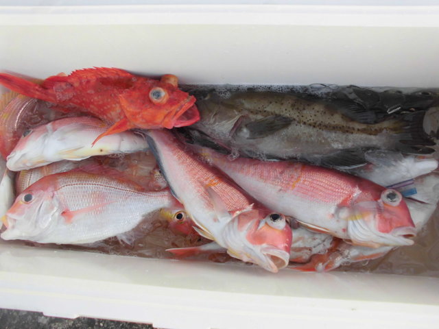 レンコ キントキ マハタ 今日は寄り道せずに隠岐の島直行。 まずは浅場から肩慣らし。 レンコ、ウッカリカサゴ釣ってもらい次はキンメ狙いのつもりが釣れない。 ヒラメ、真鯛もサッパリで甘鯛場に移動しても苦戦しました。 遠くからありがとうございました。
