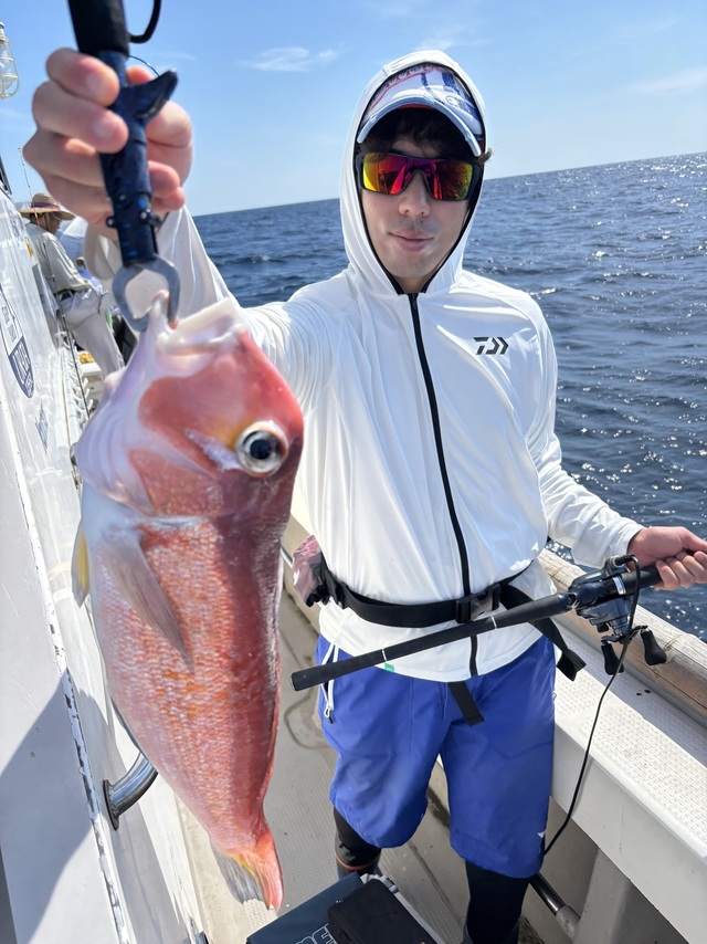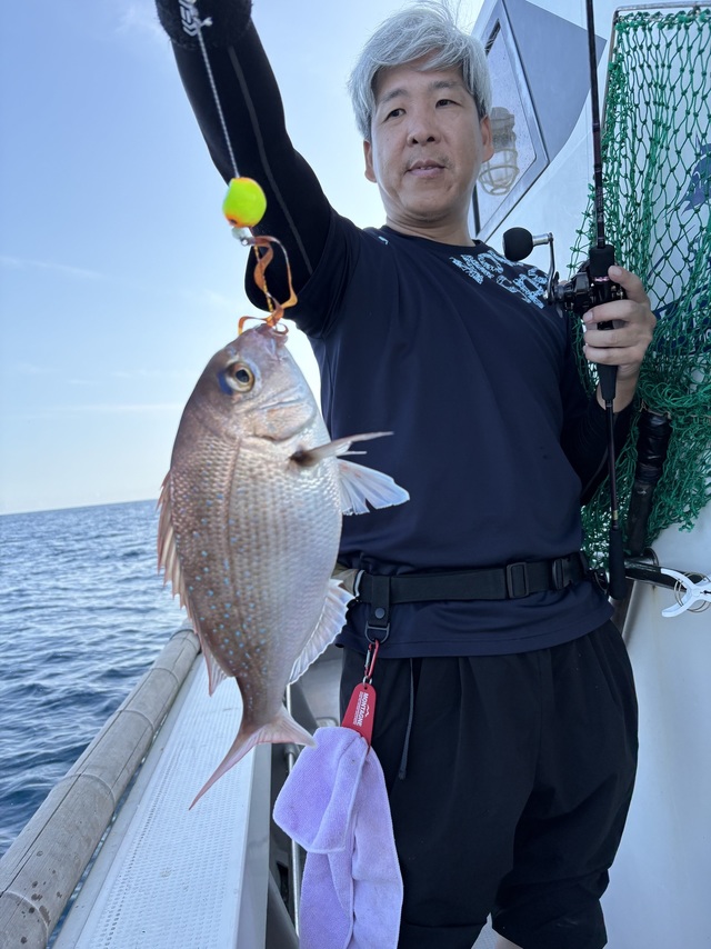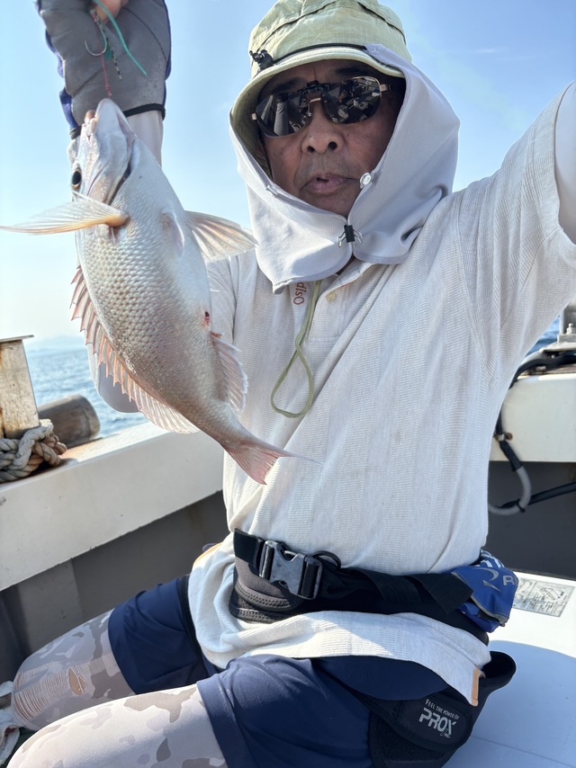 今日は6名様で出船しました。船長もビシヨマ出しました。朝まずめから真鯛が入れあたり!2枚潮のため針がかりしてもよくバレましたが、コツをつかむと、連チャンで上げられてるお客様もいました。今日の潮で真鯛上がり出しましたので、秋の潮いい感じになってきました。明日も今日のポイントへ出船します。只今6名様ですので、真夏の真鯛釣りお時間ある方はよろしくお願いします。