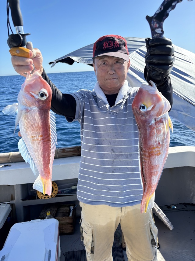 40~75cm 0~3匹 今日は沖ノ島出船しました。大鯛に底物、アマダイは釣る人5匹全体では、13匹でした。明日も沖ノ島出船します。空いていますので、よろしくお願いします。