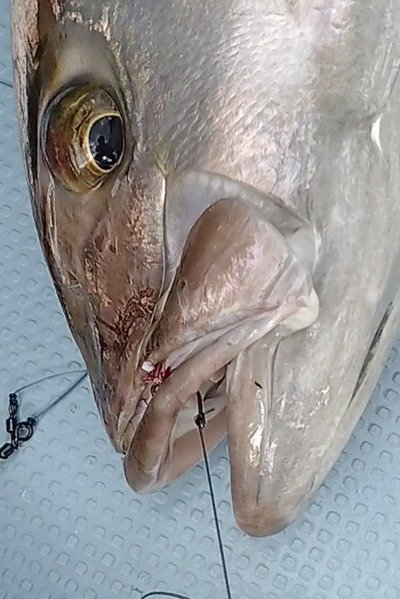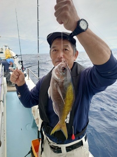 カンパチ 中深海釣り! 波予報3,0mのち1,5mと言う事ですが、それほど沖には出れないので、近場でお姫様釣り! お姫様とはヒメダイの事ね。鮫が多いポイントなので、何時もの様にお姫様が掛かる度に瞬間でブチブチ切られる・・・(・・;) 大型の鮫ではないっぽいので、試しにドラグずるずるでやり取りすると? 最初だけ走って全く引かない? あれ?これは底物系か? 残り30m! カンナギかと思い、動画回すも浮かな〜い。 水中に少し大きめの魚体が見え、鮫かと思ったら、ナイスなサイズのカンパチちゃん!