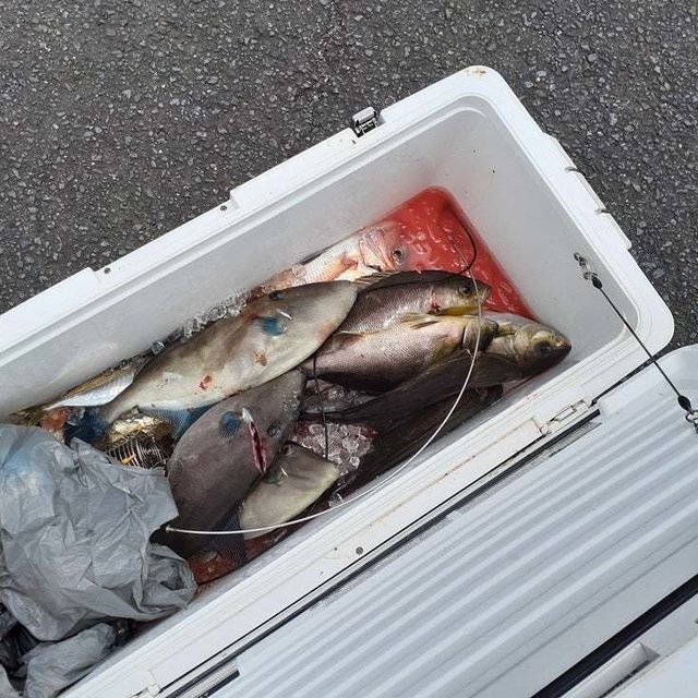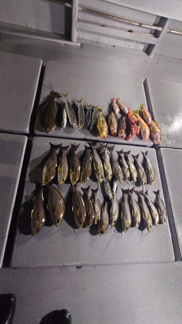 ウマヅラハギ 魚釣り初挑戦者多数。海外からお越し頂きました。お土産できてます。 ベテラン組、クーラー満タン。 本日も後乗船ありがとう お疲れさまでした。