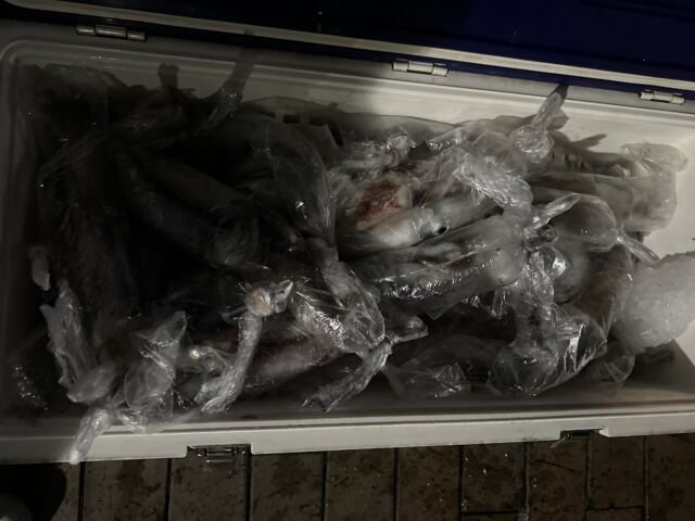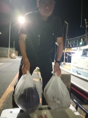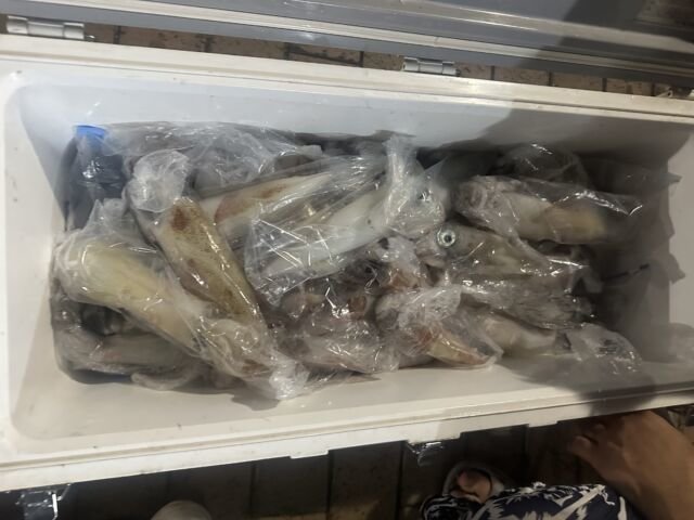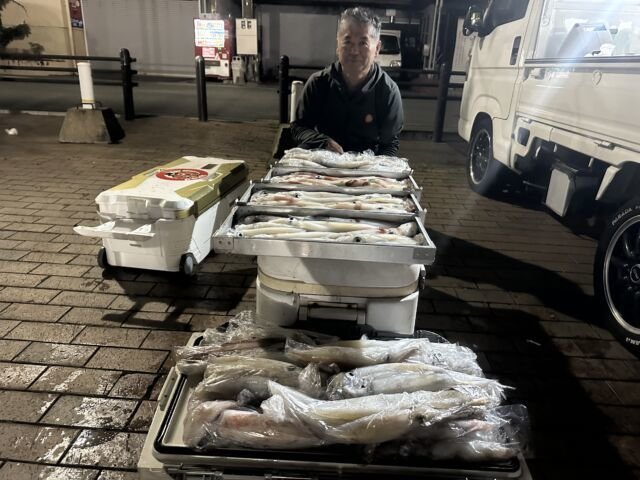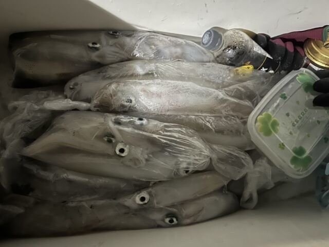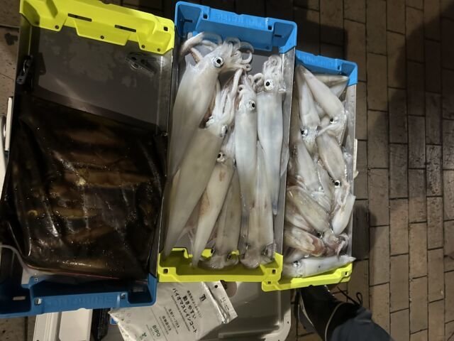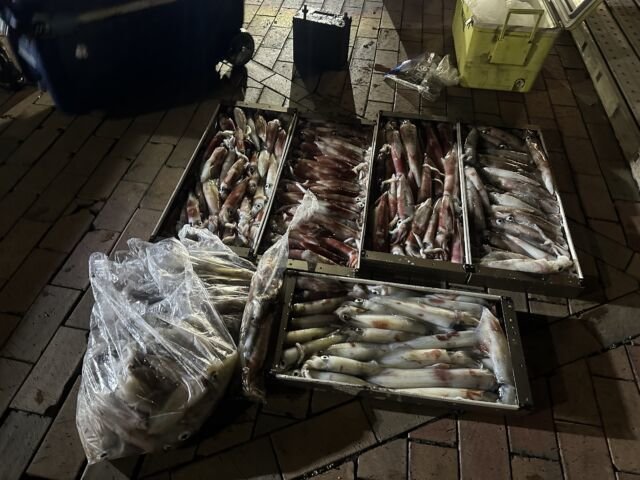 (ケンサキイカ)20~30匹 昨晩からのイカメタル出船、50超えがお二人、他の方は20-30杯ほどと渋い感じでした。多分今シーズン最後かな。今週末よりイキエビ手配しての真鯛便をメインとしていきます。
