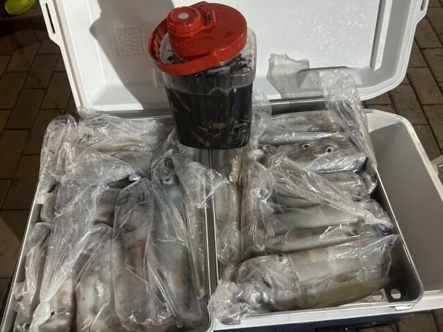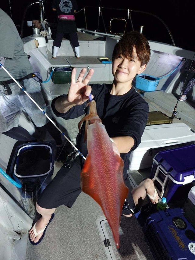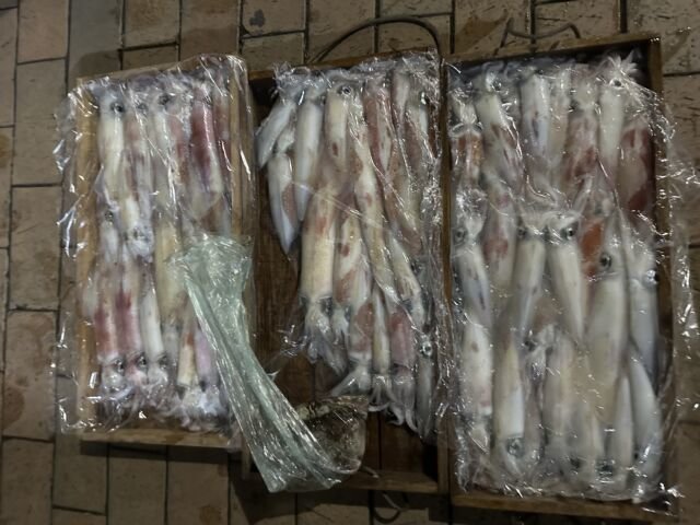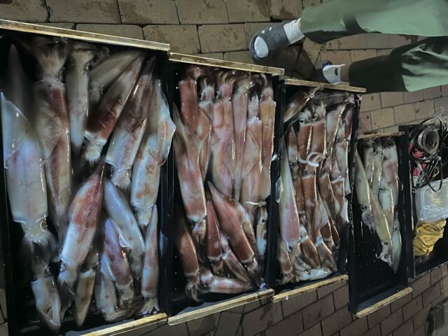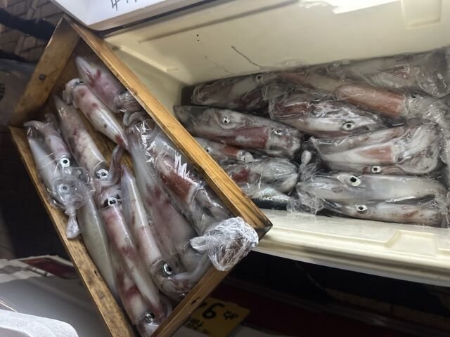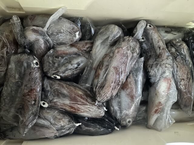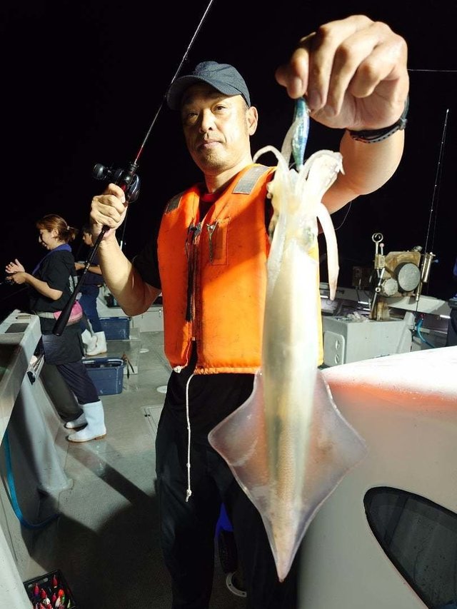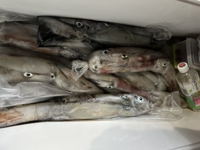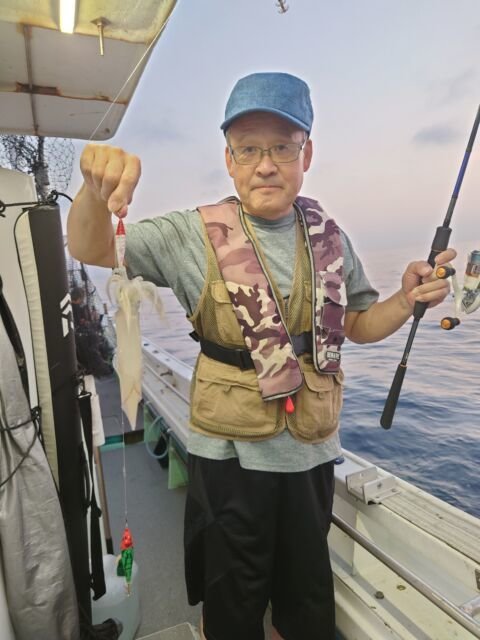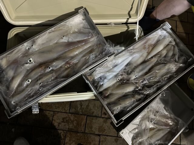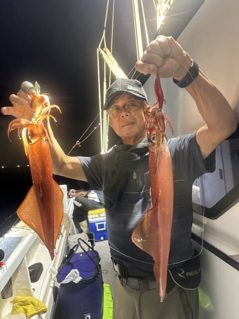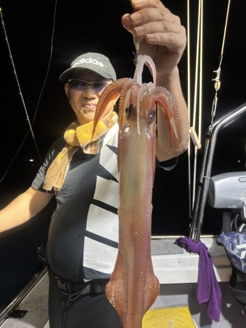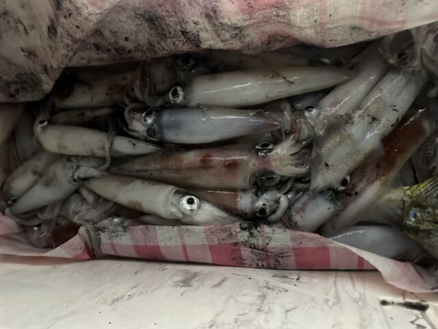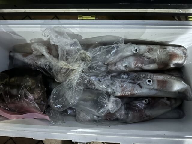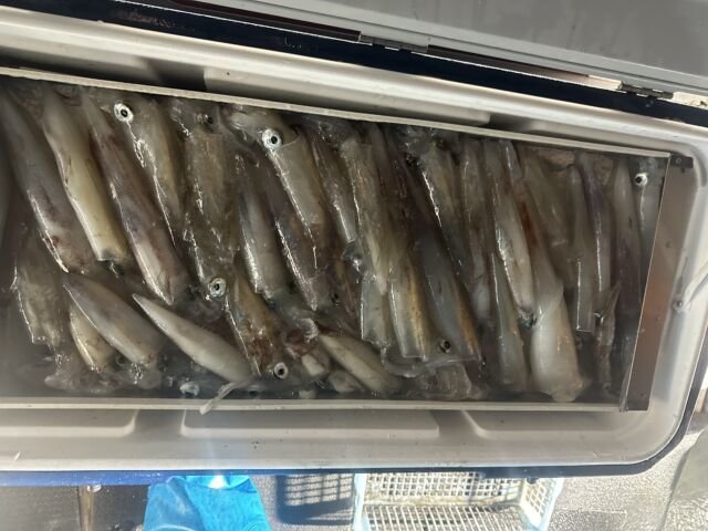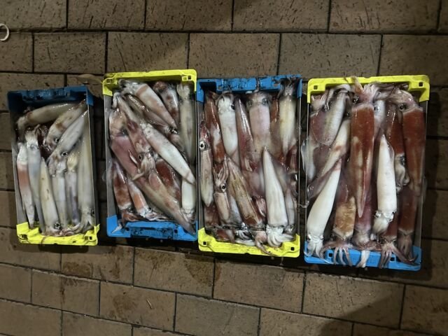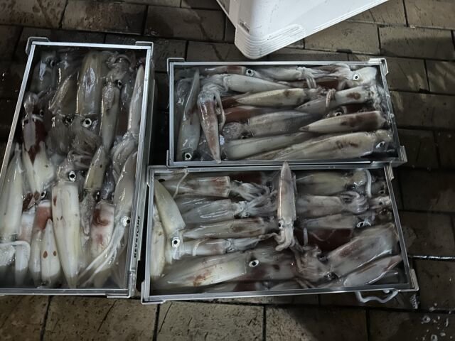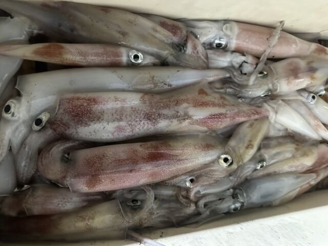 (ケンサキイカ)50~100匹 イカ釣り、復活しています。良い人は100杯ほどで慣れない方でも50杯ほどは釣っています。 日中はアジの泳がせ釣りで出船しています。