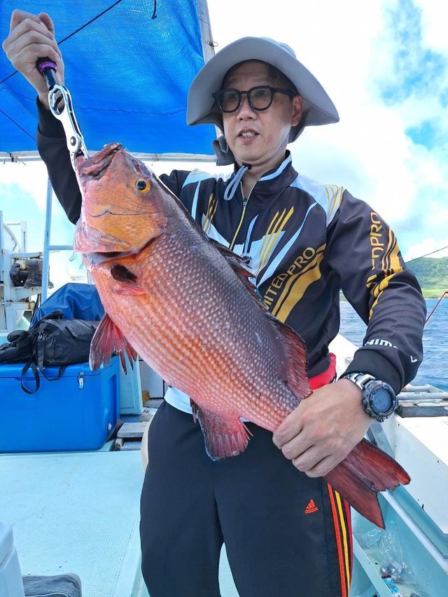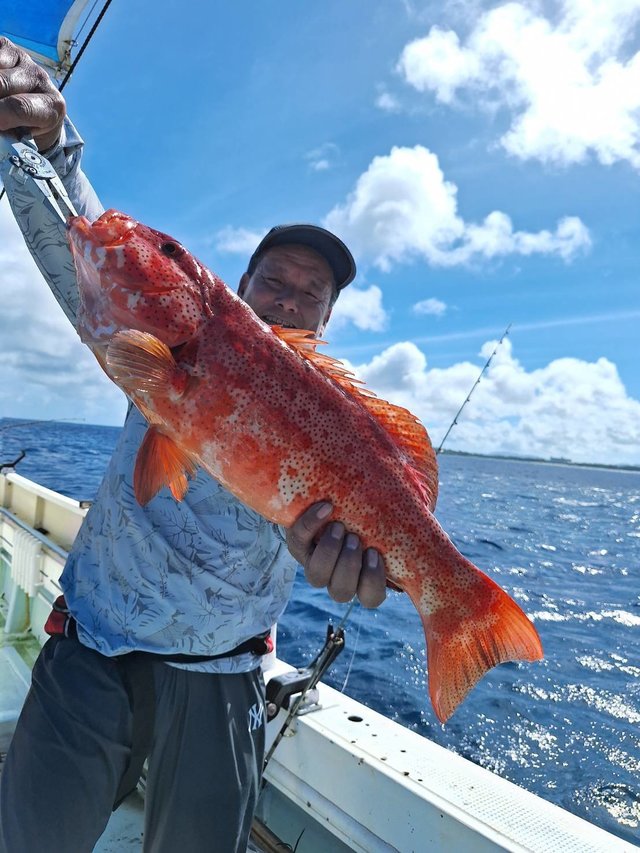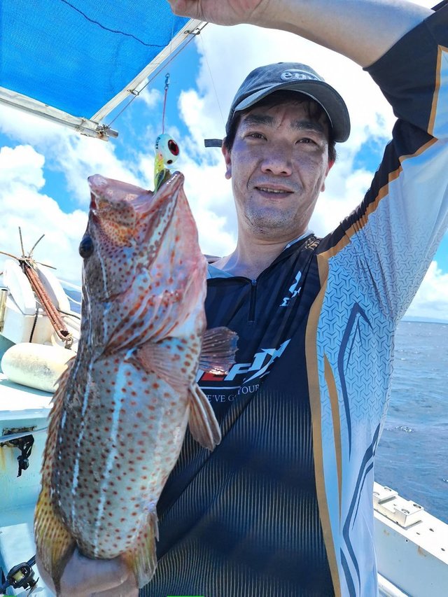 エサのグルクンを釣って沖へ。 底物激シブ 1回バラシのあとこのガーラをあげてくれました 疲れたー。