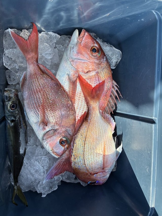 0.80~1.80kg 0~3匹 初心者様歓迎! インスタフォローで毎回500円引き! 港の駐車場代500円にぜひどうぞ! 真鯛情報です(^^) 今日も朝からポツポツと当たりがありました~ 潮の変わり目に大型の当たりがありましたが... 残念ながらハリス切れでロスト...orz それでもトップは3枚が2名様でした! 型は0.8キロ~1.8キロと食べ頃の良型揃い! ゲストには黒鯛&アジ&さらにイナダも交じり! 賑やかな釣行となりました(^^) 明日からも空いてますので ご予約をお待ちしております! 本日もありがとうございました!