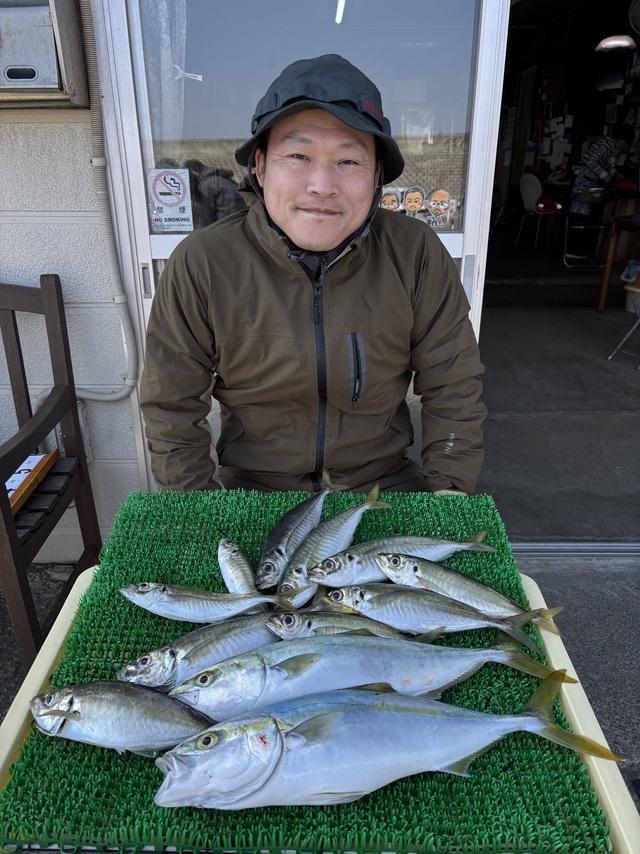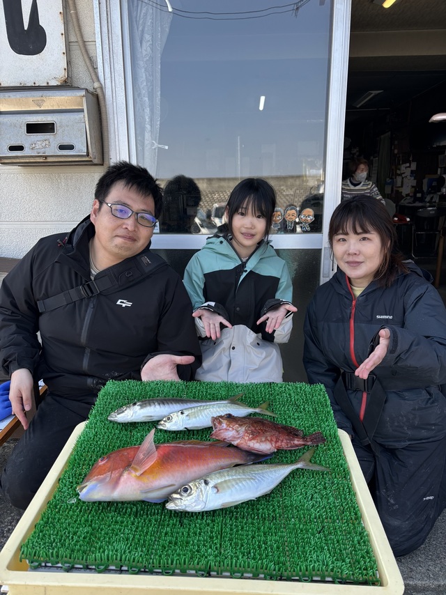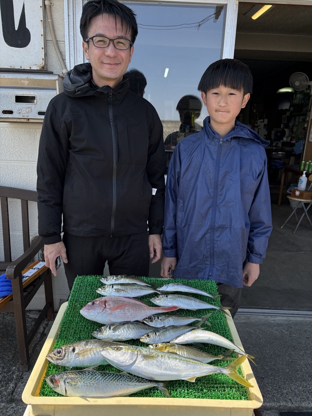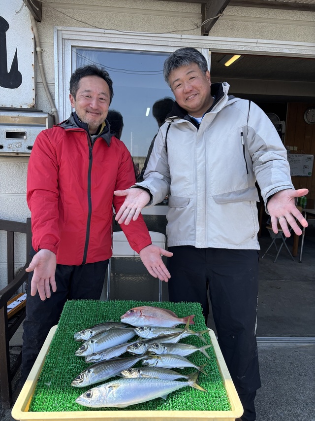 0.80~2.20kg 0~1匹 タチウオ 60~90cm 0~8匹 アジ 17~25cm 2~32匹 タチウオ 65~85cm 2~10匹 アジ 17~26cm 0~31匹 アジ 17~26cm 8~50匹 シロギス 16~22cm 5~30匹 シロギス 16~22cm 10~30匹 【タチ・アジリレー】 ●船長のコメント● タチウオは小型主体となりましたが、半日を通して魚影濃かったです。アジは前半イマイチでしたが、後半に少し釣れました。 【午前タチウオ】 ●船長のコメント● 反応広くあり、アタリ良かったですがバラシも多く…根魚交じりで釣れ半日楽しめました。 【午前アジ】 ●船長のコメント● 後半になってアタリ多く、食べる分は確保出来ました。 【午後アジ】 ●船長のコメント● 終始コンスタントに釣れました。 【午前シロギス】 ●船長のコメント● 潮速く難易度高かったです。 【午後シロギス】 ●船長のコメント● 曇り空で肌寒かったですね。潮は流れましたが数出ませんでした。 【全日マダイ】 ●船長のコメント● 浅場から深場まで色々と回りましたが、アタリが少なく厳しかったです。また明日も頑張って出船しますので、チャレンジャーお待ちしております。
