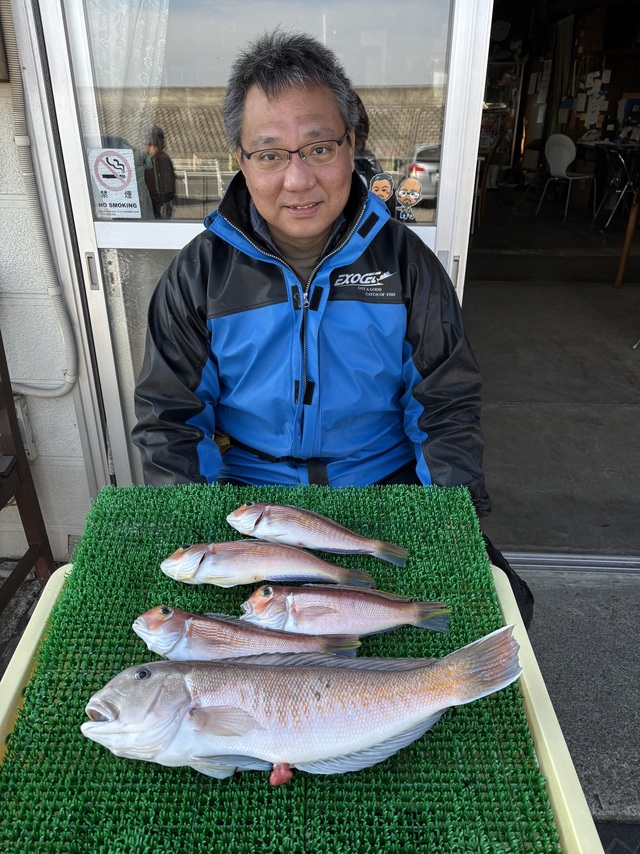 (アカアマダイ)21~44cm 1~5匹 いい凪で、ポカポカ陽気。外道にイトヨリ、カサゴ、アラ交じる。