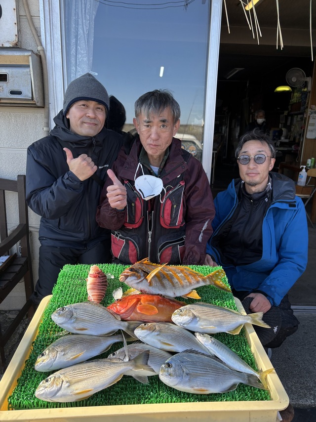 (サワラ)イサキ 18~26cm 0~3匹 アマダイ 20~49cm 0~2匹 カワハギ サバ コアジ キダイ ハナダイ イトヨリ カイワリ ホウボウ メイチダイ 4名のお客様に来て頂き秋谷〜諸磯沖で五目船。 朝イチのイナダ狙いはサバオンリーで型ミズ… コマセ狙いはほぼ撃沈。 後半のアマダイ狙いは良いポイントへ入れた様で49cm頭に40cmも2匹と良型混じりました。 アマダイ、トップ3人船中11匹。