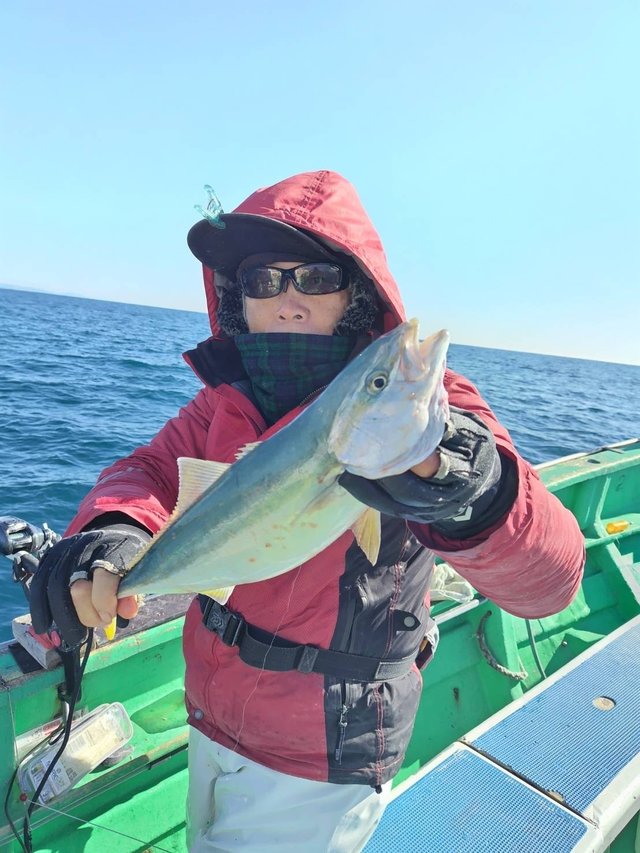 AM青物ルアー船。朝練ジギング。モーニングパターン。皆さんで5打数、スパッと1サメっぽいのブレイク。モンPっぽいの止まらずブレイク。サゴシ1、ワラサっぽいのポロリ1。サゴシ見ただけで、後はヤラレてタイムアウトでしたm(__;)m極寒中の朝練お付き合いお疲れ様でした。