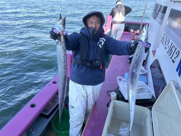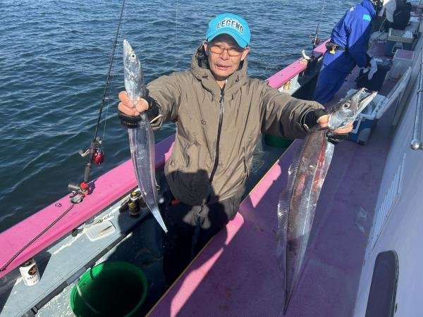 80~100cm 0~1匹 タチウオ 70~110cm 0~4匹 アジ 16~25cm 12~32匹 アジ 17~26cm 5~21匹 アジ 17~28cm 0~64匹 マダイ 0.40~1.00kg 0~1匹 【タチ・アジリレー】 ●船長のコメント● タチウオは細切れ反応は有るもののアタリ少なく大苦戦。アジは小・中型交じりでおかず分は確保出来ました。 【午前タチウオ】 ●船長のコメント● 前半アタリを出すのが難しかったです。中盤から反応が良くなりアタリも少し出はじめ、中型が釣れました。 【午前アジ】 ●船長のコメント● 高い波に皆様苦戦してました。 【午後アジ】 ●船長のコメント● 2番手63、3番手60尾と近場ポイントで絶好調でした。 【全日マダイ】 ●船長のコメント● 今日も色々と探索の旅へ出てきました。なかなか良いポイントが無く苦戦していますが明日も頑張って出船しますので、チャレンジャーお待ちしております。