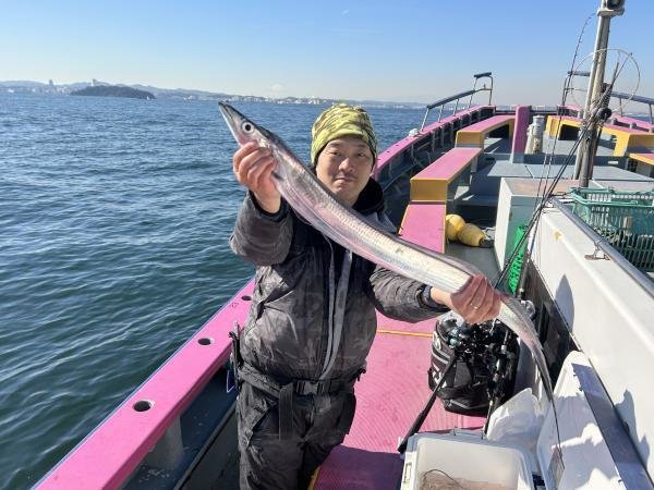 75~110cm 0~8匹 アジ 22~36cm 1~17匹 ■タチウオ&アジリレー船■ <タチウオ>走水沖70m。走水~台船回りで釣れました。活性上がらず、難易度高めの冬タチでした。少ないながらも単発のアタリでした。残念ながら1名様、型が見れませんでした。 <アジ>観音崎沖60m。水温低下で活性上がらず、単発の拾い釣りでした。