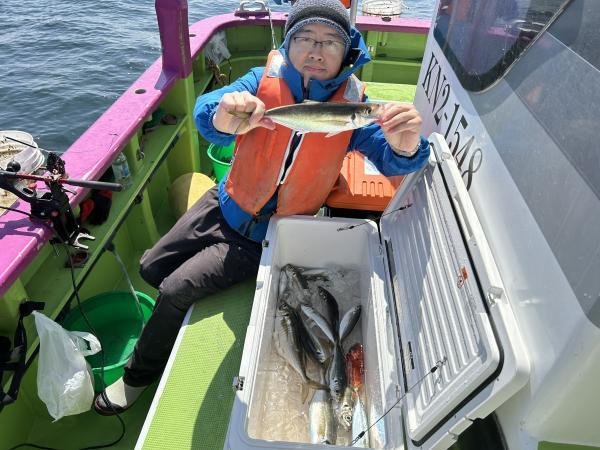 (マアジ)18~30cm 3~17匹 クロダイ 1.20kg 合計1匹 マダイ 0.50kg 合計1匹 本日もご乗船ありがとうございました。 今日は2隻出船しました。 アジはポツポツ。 イナダを2尾釣った方や、 マダイ、ハナダイ、クロダイ、イラ、アマダイ、カサゴ、アカボラ、サバなどがまじりました! 明日は、お電話にてお問い合わせください。