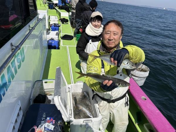 (マアジ)25~40cm 0~9匹 アマダイ 28~45cm 0~4匹 シロアマダイ 32~40cm 0~2匹 イトヨリ 27~32cm 0~3匹 サバ 28~42cm 0~12匹 潮流れ悪く、イマイチの食いでした。天候はポカポカ陽気で釣り日和でした。