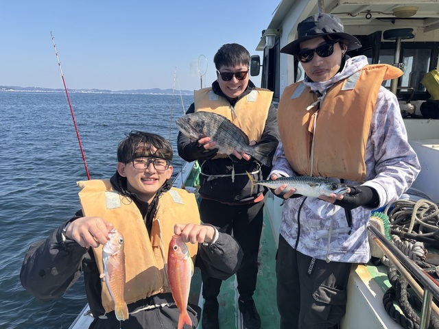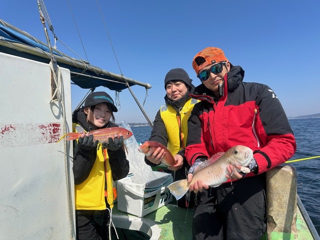 (マアジ)28~30cm 0~6匹 アマダイ 25~42cm 0~1匹 イトヨリ 26~37cm 0~1匹 ウィリーアマダイ五目アマダイ(シロアマダイ混じり)25~42㎝0~1枚イトヨリ26~37㎝0~1枚ホウボウ25~30㎝0~3枚アジ28~30㎝0~6匹ハナダイクロダイワニゴチサバEtc 潮流れが悪くアタリを獲るのが難しいなか皆さん頑張ってくれてハナダイクロダイアマダイシロアマダイイトヨリホウボウ始めゲストのアジサバと釣り座により釣果にバラツキがありましたが状況を考えるとまずまずでした!