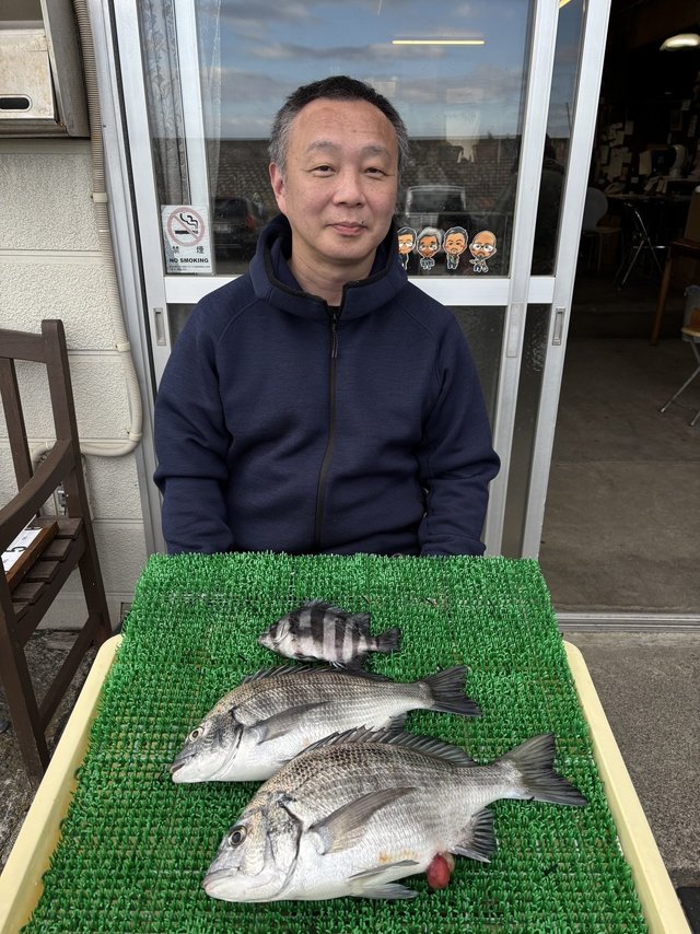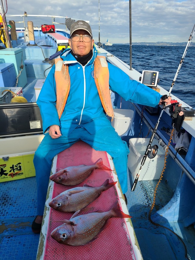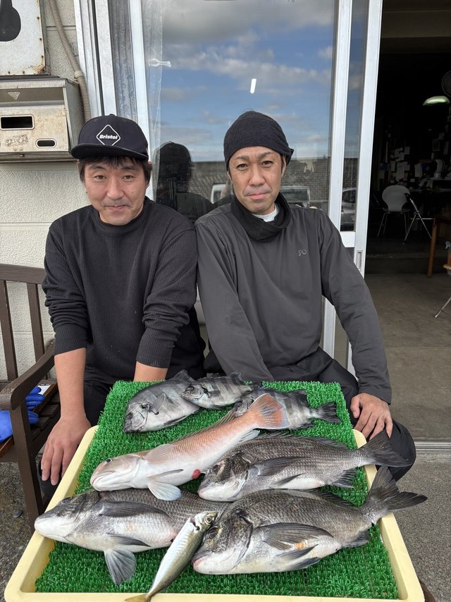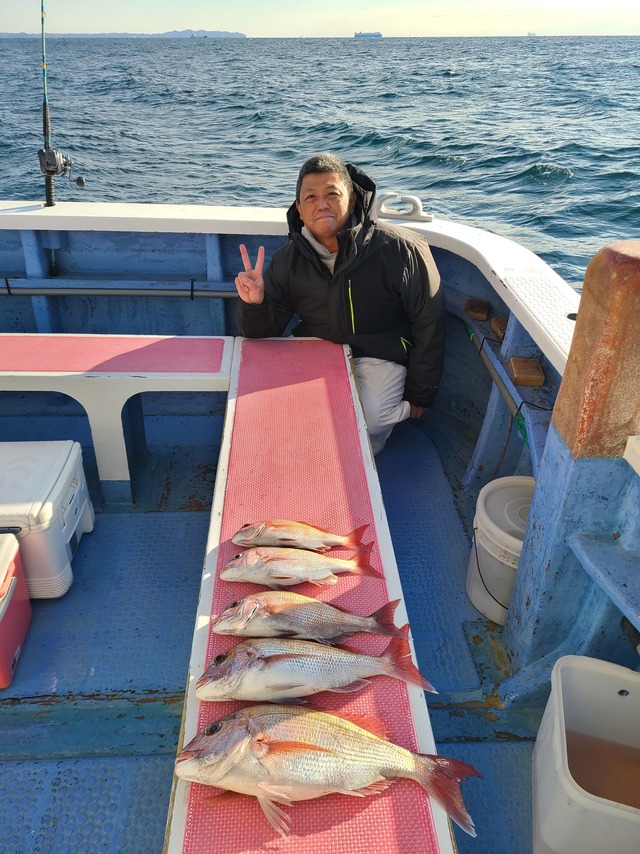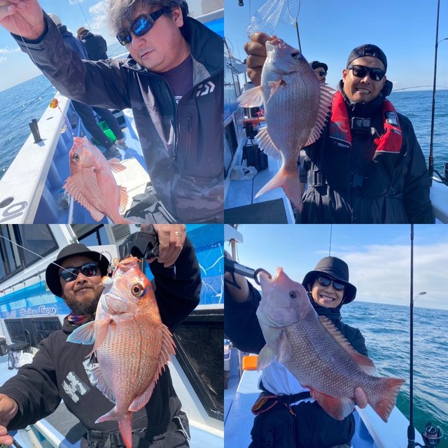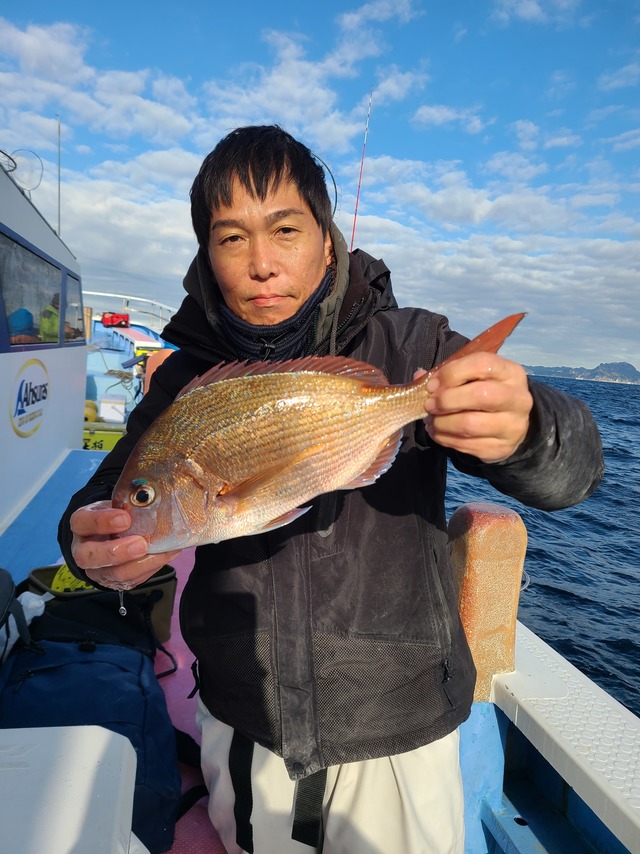 0.30~1.50kg 0~9匹 ★★★活きエビでの一つテンヤマダイ釣り♪★★★ (活き海老エサが準備できない場合は冷凍海老での釣行になります。) エサは、こちらで準備しております。 エサの追加料金は頂いておりません。 <マダイ船> 一つテンヤでのマダイ釣りです。潮が濁ってしまった為か真鯛の活性今一つ。次回に期待しましょう。 外道:ハナダイ、カサゴ、メバル、ハタ。 ***キャビン内、店内はマスクの持参着用をご協力お願い致します*** <今後の予定>***集合時間まえにはお越しください。 午前船:4時30分船宿集合…マダイ船。 午後船:10時30分船宿集合…マダイ船。 定休日:第2火曜日(1/13) (土、日、祝日は、貸竿のお客様、貸竿の必要なグループ様は5分前集合でお願い致します。) (*状況により予定が変わることもございます。前日に確認のお電話をお願い致します。) <ご予約・お問い合わせはこちらへ> 090-2155-0500(午前9:00~午後8:00まで) キャンセルにより他のお客様へご迷惑をおかけしてしまう事もありますので、キャンセルの無いようご予約をお願い致します。 <乗船名簿について> ①お名前(フルネーム)、②住所、③緊急連絡先の電話番号、④年齢、⑤性別 ①~⑤まで記入し可能であれば、持参お願い致します。