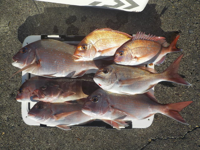 0.30~1.00kg 0~7匹 マゾイ 28~32cm 0~1匹 カサゴ 25~30cm 0~5匹 一つテンヤマダイで出船しました。水温17℃ マダイ最大で1kgその他0.6kgトップ7尾でした。マダイ0.3~1kg0~7尾。ゲストでマハタ、マゾイ、カサゴ、ハナダイ、ショウサイフグでした。本日、乗船の皆様ありがとうございました。 【お知らせ】 明日12月19日(金)は一つテンヤマダイで出船致しまし。お早いご予約お待ちしております。 年末年始のお知らせ! 年末は31日まで年始は3日から出船いたします!お早いご予約お待ちしております。 11月1日からテンヤマダイ船集合5時に変更しました! ※誠に勝手ながら満船時の当日キャンセルは乗船料の100%頂きます。ご了承下さい! 一つテンヤマダイ 12,000円(エサ、氷付き) 集合4時30分になります。 アマダイ、アマラバ 12,000円(エサ、氷付き) 集合4時30分になります。 エギダコ 13,000円(氷付き) 集合4時になります。 ご予約 電話090-1842-0165 お気軽にお電話下さいね!!