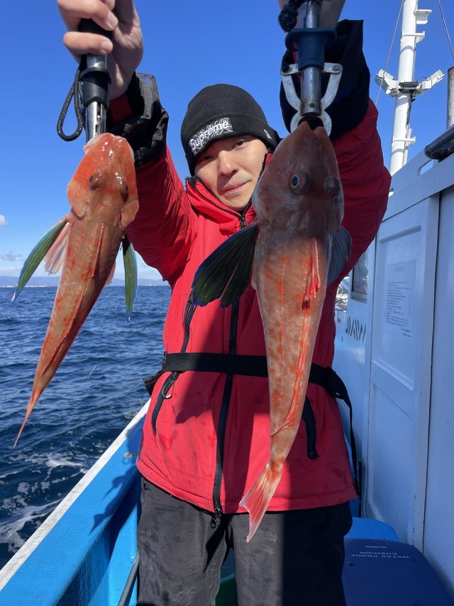 0.30~1.40kg 0~2匹 アマダイ 35~46cm 0~2匹 トラフグ 3.00kg 合計1匹 マゾイ 30~40cm 0~1匹 ウッカリカサゴ 20~32cm 0~2匹 メバル 28~32cm 0~2匹 ワラサ 2.00~3.00kg 0~2匹 一つテンヤマダイで出船しました。 水温16.1℃ マダイ最大で1.4kgその他1.2kg、1kg、0.3kg...トップ2尾でした。マダイ0.3~1.4kg0~2尾。アマダイ30~46cm0~2尾、ホウボウ30~45cm0~4尾、ゲストでマゾイ、アマダイ、マハタ、ヒラメ2kg、トラフグ3kg、ウッカリカサゴ、イシナギ、メバル、オニカサゴ、ホウボウ、ハナダイ、レンコンダイ、ショウサフグでした。本日、乗船の皆様ありがとうございました。 【お知らせ】 2月3日(火)はアマダイ、アマラバで出船致します。お早いご予約お待ちしております。 テンヤマダイ船集合5時になります! アマダイ、アマラバ船集合4時30分になります! ※誠に勝手ながら満船時の当日キャンセルは乗船料の100%頂きます。ご了承下さい! 一つテンヤマダイ 12,000円(エサ、氷付き) 集合5時になります。 アマダイ、アマラバ 12,000円(エサ、氷付き) 集合4時30分になります。 エギダコ 13,000円(氷付き) 集合4時になります。 ご予約 電話090-1842-0165 お気軽にお電話下さいね!!