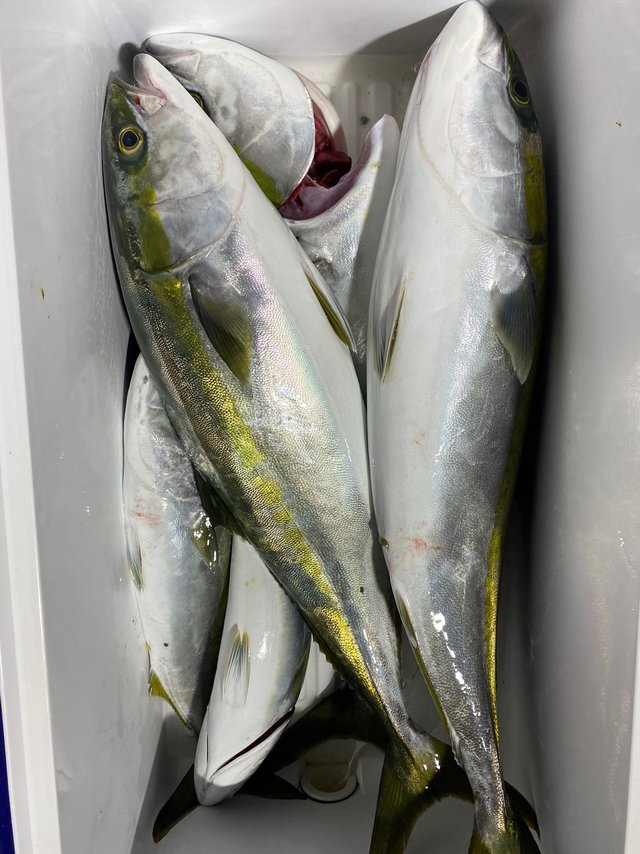 (マダイ)合計2匹 ハナダイ 合計2匹 トラフグ 3.00kg 合計1匹 イナダ ホウボウ カサゴ ハタ 本日もべた凪の中、出船しました。 んー前半、流れはいいのにタイの活性低めアセアセというよりエビへの反応悪く苦戦。 途中、艫名人へ青物ヒット〜 やり取りから型良さそう? 無事にイナダ玉網へ。 これがまた、尻尾のあたりに孫針ガッツリヒットしてたのでなかなかレアな引きでした。 2流しほど、アタリ多いポイントへ移動し、お土産釣ってから上げ潮、戻って勝負もダメでした。