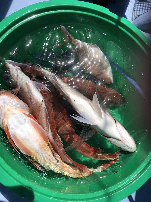 0.60~6.28kg 0~4匹 🎣午前テンヤマダイ船 🦐活申エビ使用 3隻の高低差 サイズ0.6〜6.28キロ 0〜4枚 竿頭肥後さん、二番3枚大島さん、大野さん 外道ハナダイ、ワラサ、ホウボウ、特大アジ55センチ、カサゴ、イナダ ウネリが有る中、中鯛、大鯛を含め、根魚が多彩に掛かりました。 ご乗船の皆さん、大変お疲れ様でした。ありがとうございました。またのお越しをお待ちしております。