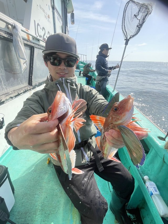 2.00kg 合計1匹 午前テンマキ マダイ、ハナダイ、ホウボウ、カサゴ、マハタ、イナダ、トラフグ、サバ、赤黒メバルなど 中盤まではなにも釣れず 途中入ったポイントではアタリ活発、魚種多彩に釣れました マダイは400〜2キロまで混じり 青物はイナダサイズ〜4キロくらいまで ホウボウは大〜特大サイズも結構混ざる 青物ラッシュでみなさん複数本キャッチです テンヤのベタ底でも食ってしまい避けようのないくらい活発でした 青物が落ち着いてからはマダイ中心にアタリ活発 潮止まり時間までは好調でした👌