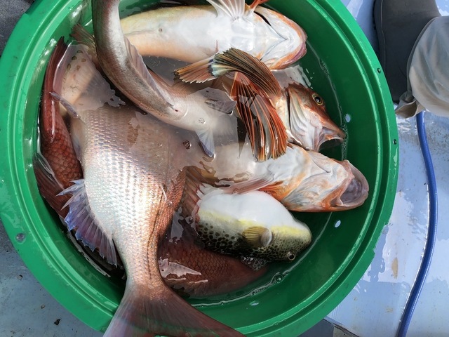 0.50~4.20kg 0~2匹 【マダイ】 0-4枚。4200g増田さん4枚。2700g黒田さん3枚。500-4200g。船中12枚。外道オニカサゴ、ホウボウ。1日ポツリポツリ釣れました。明日は満席です。