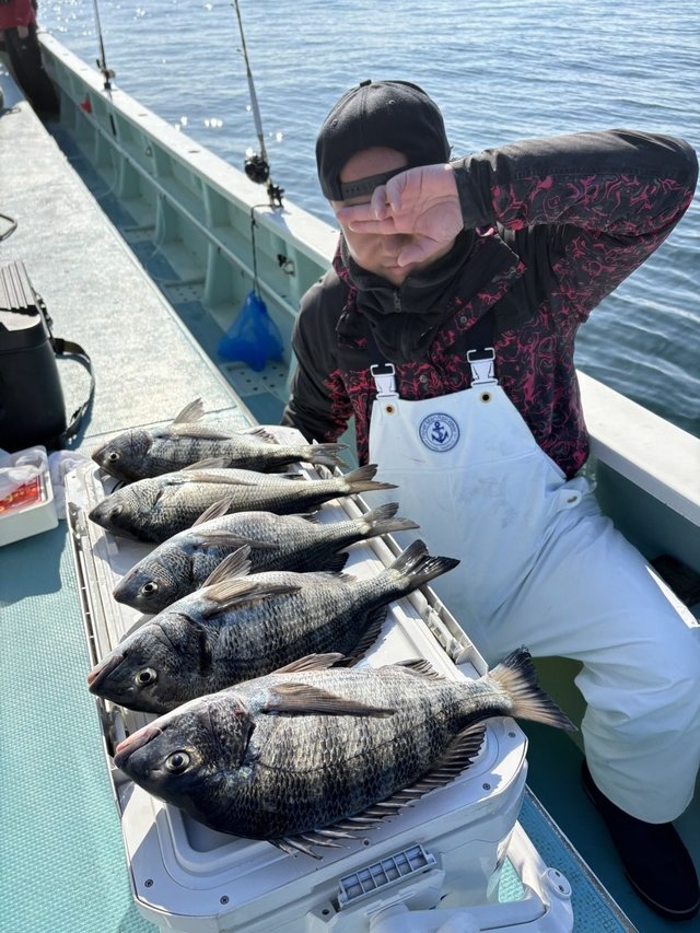 0.50~2.20kg 2~7匹 クロダイ 1.00~2.00kg 0~3匹 マダイ五目で出船! 今日もポイントを転々とし、どこでもチャンス時が多く、その際にマダイが多数ヒットしました!! 所々でバラシもありでしたがみなさんの頑張りでオデコなく釣れてトップは7枚!! スソでも2枚と絶好調!! 良型では2キロオーバーも上がり、キロオーバーも複数出たりでとても盛り上がりました!! ゲストはクロダイ、マアジなど 毎日ガラガラ状態なので皆様のチャレンジ、是非ともお待ちしております~! チャンス時の釣り方は手返し早め(2~3分前後)とステンカン、サニービシ(おすすめはLサイズ)で強いコマセワークが有効!!