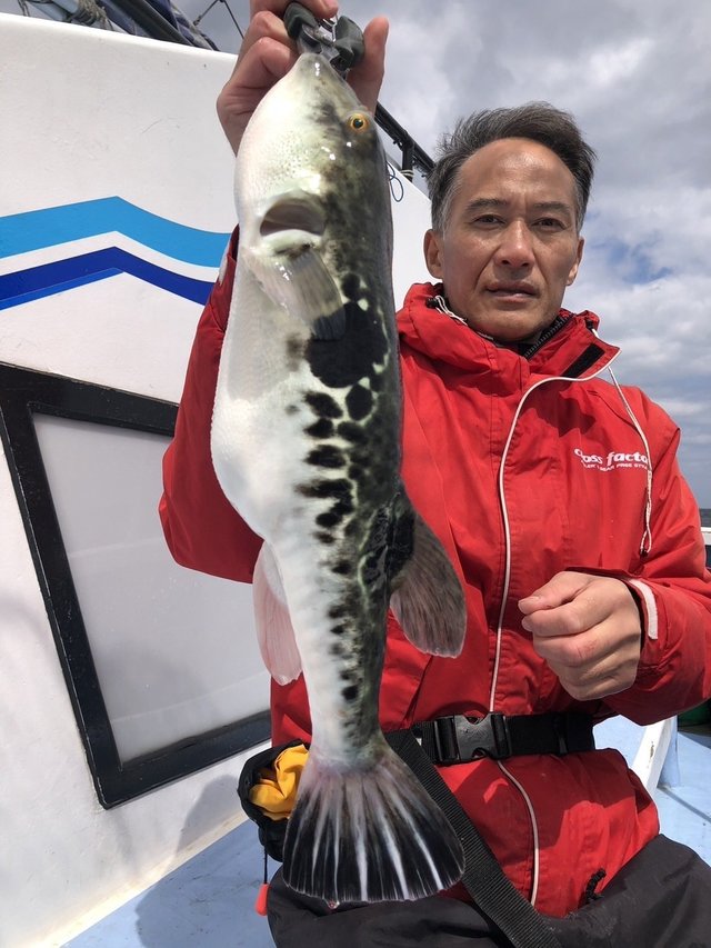0.60~2.89kg 0~5匹 ショウサイフグ 28~43cm 6~28匹 ◆午前テンヤマダイ船 サイズ0.6~2.89キロ0~5枚 (オデコ1名) 竿頭田沼さん 外道ハナダイ、ホウボウ、ショウサイフグ、ヒラメ、マハタ、トラフグ ◆ショウサイフグ船 サイズ28~43cm6~28匹 外道ウマズラハギ 竿頭神奈川県の方 午前マダイ船は潮流れ悪くもポツポツ掛かりました。今後も楽しみです。 フグ船は前半~反応に乗れず苦戦していましたが後半浅場で掛かり出し数が上がりました。 ご乗船の皆さん、大変お疲れ様でした。ありがとうございました。またのお越しをお待ちしております。 明日は風が強い為鹿島全船中止となりました。 大変申し訳ございませんが宜しくお願い致します。
