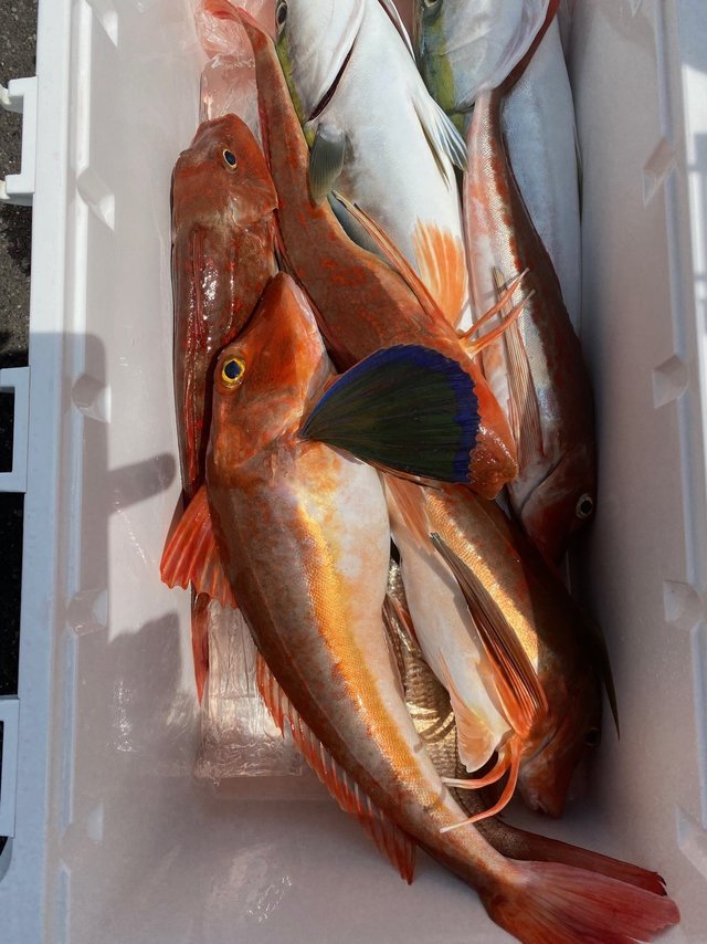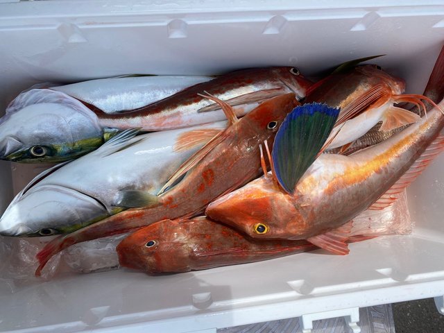 0.90~4.26kg 0~3匹 アマダイ 40~43cm 0~1匹 ウッカリカサゴ 25~38cm 0~3匹 メバル 28~32cm 0~2匹 ホウボウ 35~45cm 0~2匹 一つテンヤマダイ、タイラバで出船しました。 水温15.1℃ マダイ最大で4.26kgその他2.49kg、2.13kg、1.82kg、1kg、0.9kg...トップ3尾でした。マダイ0.3~4.26kg0~3尾。アマダイ40cm~43cm0~2尾。ウッカリカサゴ25~38cm0~3尾。ホウボウ30~45cm0~2尾。ゲストでアマダイ、メバル、カンコ、ホウボウ、レンコンダイ、カナガシラ、ムシガレイでした。本日、乗船の皆様ありがとうございました。 【お知らせ】 明日4月10日(金)は予報悪く出船中止します。 テンヤマダイ船集合5時になります! アマダイ、アマラバ船集合4時30分になります! ※誠に勝手ながら満船時の当日キャンセルは乗船料の100%頂きます。ご了承下さい! 一つテンヤマダイ 12,000円(エサ、氷付き) 集合5時になります。 アマダイ、アマラバ 12,000円(エサ、氷付き) 集合4時30分になります。 エギダコ 13,000円(氷付き) 集合4時になります。 ご予約 電話090-1842-0165 お気軽にお電話下さいね!!
