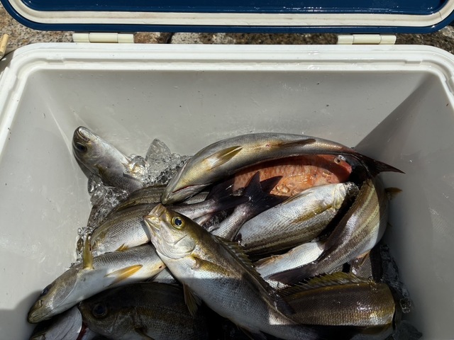 27~35cm 合計3匹 マアジ 23~40cm 10~15匹 イサキ五目釣りに出船しました。 休日あるあるの行きなりの喰い渋りイサキは型見た程度で切り替えてアジサバ釣り喰いはよくはなかったですがポツポツと小中大とサイズはバラバラでしたがお土産にはなってよかったです。