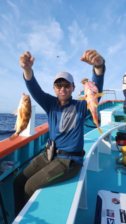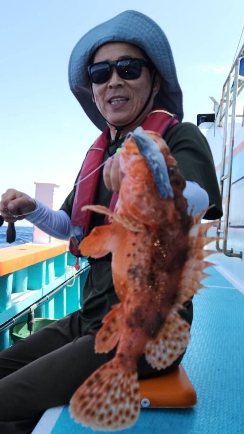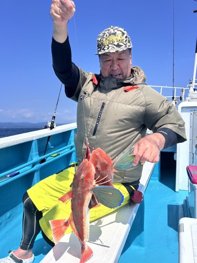 (オオクチイシナギ)オニカサゴ 0.60~1.60kg 0~2匹 メダイ 1.50~6.40kg 0~6匹 アラ 集合時間が変わりました。 ヒラメ4時15分 明日はヒラメとマダイ又はイサキハナダイ五目(コマセ) 午後マダイで出船予定です。ヒラメ中盤から釣れ出して9匹筆頭に8匹と続き6匹多数。良型もあがりました! 沖根魚は朝のうちサメに邪魔され鬼カサゴに多彩なゲスト混じりでお土産となりました。 またリクエスト下さいね! 明日もはりきって行きましょう\(^-^)/ 募集中 23日(日)午後マダコ 変更、お知らせあればまたこちらで載せます。 人数集まれば出船致します。 人数が集まらないと出船できません。 人数と釣果次第で変更します。 天候の変わりやすい季節です、中止等お知らせで載せますが、遅い時間になる時もありますのでご心配の方は電話でお問い合わせ下さい。 マダコ募集しますのでご希望日リクエスト下さいね~。 マダコですが、オモリ60~100号しかけエギ3.5~4号道糸PE3~4号リーダー700前後 真ダコファン集まれ~! イサキが釣れていますので是非(ノ・∀・)ノ エサの用意があるので、前日までにご予約ください。 今後はヒラメ、マダコ、アマダイ、イサキハナダイ五目(コマセ)、テンヤマダイ、沖根魚(アラ鬼カサゴ)、アカムツ 午後マダイで出船予定です。 初めての方や慣れていない方は是非、船長の見える場所へお座り下さい! 予約時すぐに電話に出れない時がありますが折り返します! 千葉東金横芝ICから匝瑳市(旭市隣)まで高速道路が延長になりました。最終、匝瑳ICで降りて右折、海沿いで是非いらっしゃって下さい。早くなりますよ~! 午前船のお客様はお弁当付いてます(ノ・∀・)ノ 集合時間 沖根魚、アカムツ、アマダイ3時30分 ヒラメ4時 マダコ、マダイ、イサキ五目4時 午後船は12時 時間厳守でお願いいたします! もし遅れる等の場合は早急にご連絡下さい。他のお客様を待たせてしまう、出船時間も遅れてしまいます。 リクエスト、人数天候等により変更あります! テンヤは遊動式しかけで!初心者でも釣れますよ~! 初心者の方、予約時お知らせ下さい。 救命胴衣(無料)、レンタル貸竿(基本無料。有料も有)ございます。