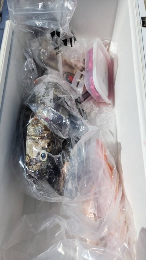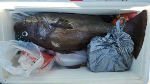 (オオクチイシナギ)アジ 21~38cm 10~61匹 クロムツ 今日のアジは久里浜沖を狙っていきました。潮は上げ潮から下げ潮でした。潮色が澄んでしまい、アジも深場に落ちてしまい、若干難しい釣りとなってしまいました。それでもアジの活性は高くダブル、トリプルで釣れる場面もありポツポツ釣れました。型は中アジ中心に大小混じりでした。今日のトップは片桐さんで61匹、2番手57匹でした。皆さん本日もお疲れ様でした。