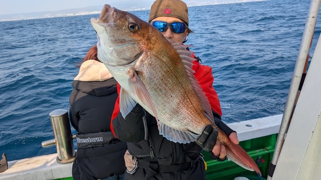 1.20~4.30kg 0~2匹 トラフグ 合計2匹 タチ 合計1匹 マサバ 合計2匹 ホウボウ 合計1匹 微風、潮無し!!スタートはマダイから狙い、ふた流し目に女性アングラーさん落ち着いたやり取りで1,3キロをキャッチ(◠‿◠) 続いて幹事さんにビッグヒット!! ドラッグ緩めとは言えライン出る出る!!重量感たっぷりなため時間かけてタモ入れ出来たのは、4,1キロの極太メスをキャッチお見事です♪ その後、人生釣り初めてのアングラーさんにヒットあり、窓からアドバイスさせて貰いながらマダイ4,3キロのオスをゲットされました。 サワラの様子も常時入って来ますが、良い情報なく皆さんに確認したところ、このままマダイを狙いたいとの事で続行し、またしても釣り初の方にヒットして1,6キロ2枚目と続いてくれました(◠‿◠) 大トラも水面まで追いかけてくる事3回ありましたね。マダイノッコミ始まってます!! 連日大ダイ釣れてますので皆さん遊びに来て下さい♪ 本日も乗船ありがとうございました♪
