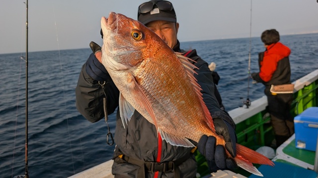 テンヤ真鯛船、朝のうちポツポツと型は出るもその後は続きませんでした。明日もテンヤ真鯛船に出船します。ご予約受付中です。