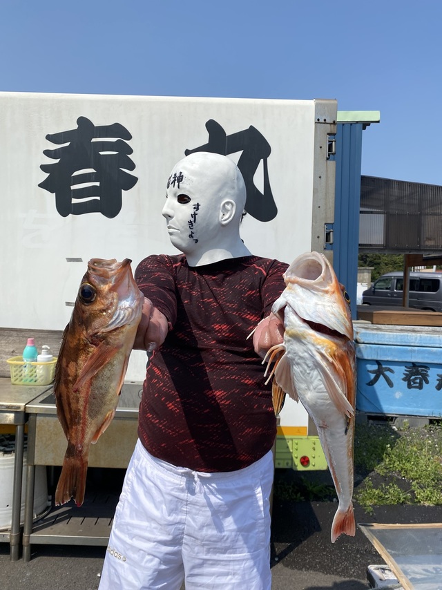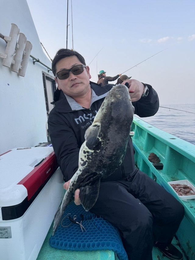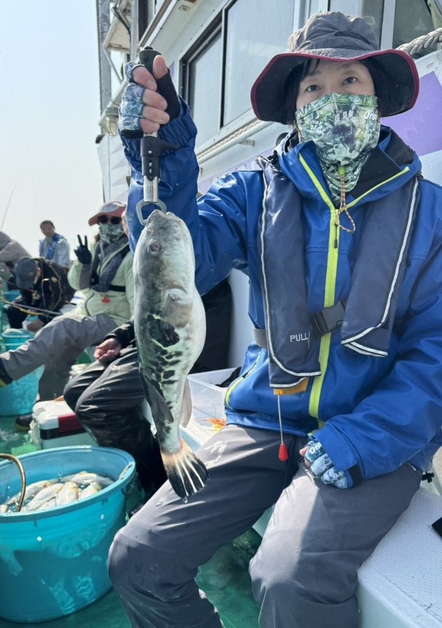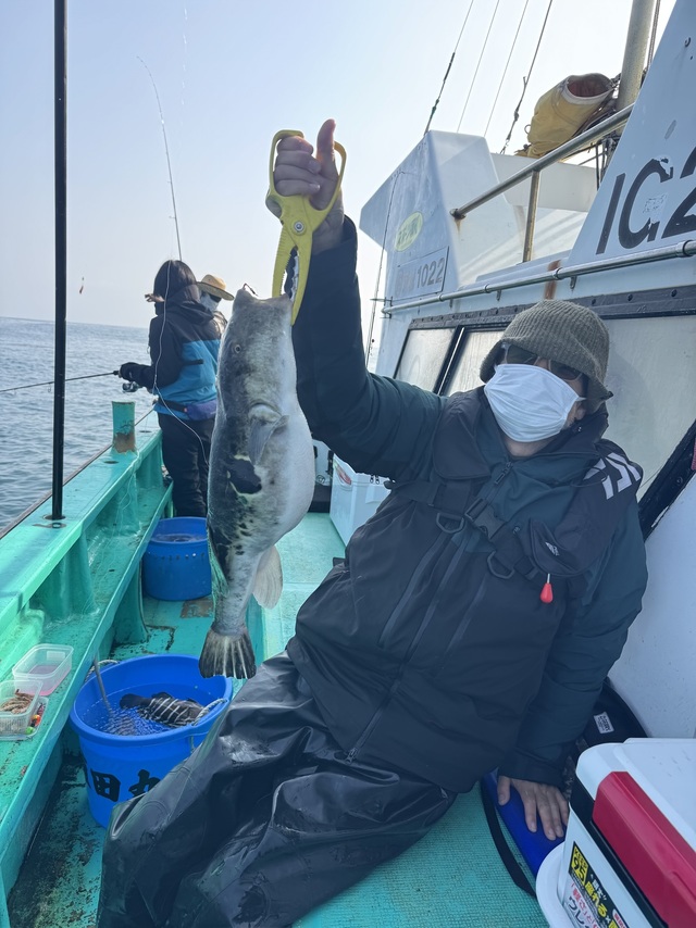 0.30~5.84kg 0~5匹 ショウサイフグ 28~43cm 2~14匹 ◆午前テンヤマダイ船 2隻の高低差 サイズ0.3~5.84kg0~5枚 竿頭高橋さん、2番石亀さん 1キロ代船中20枚以上 外道ハナダイ、ホウボウ、カサゴ、ヒラメ、マハタ、ショウサイフグ、トラフグ、クロメバル、アカメバル、カンダイ、イナダ ◆ショウサイフグ船 ジャンボフグ主体 サイズ28~43cm2~14匹 外道ホウボウ、トラフグ 竿頭吉井さん 今日の真鯛船は平均型が良く、2.5キロ以上の大鯛、中鯛も上がりました。 フグ船は型が良く何とか数が上がりました。 ご乗船の皆さん、大変お疲れ様でした。ありがとうございました。またのお越しをお待ちしております。