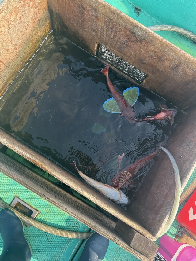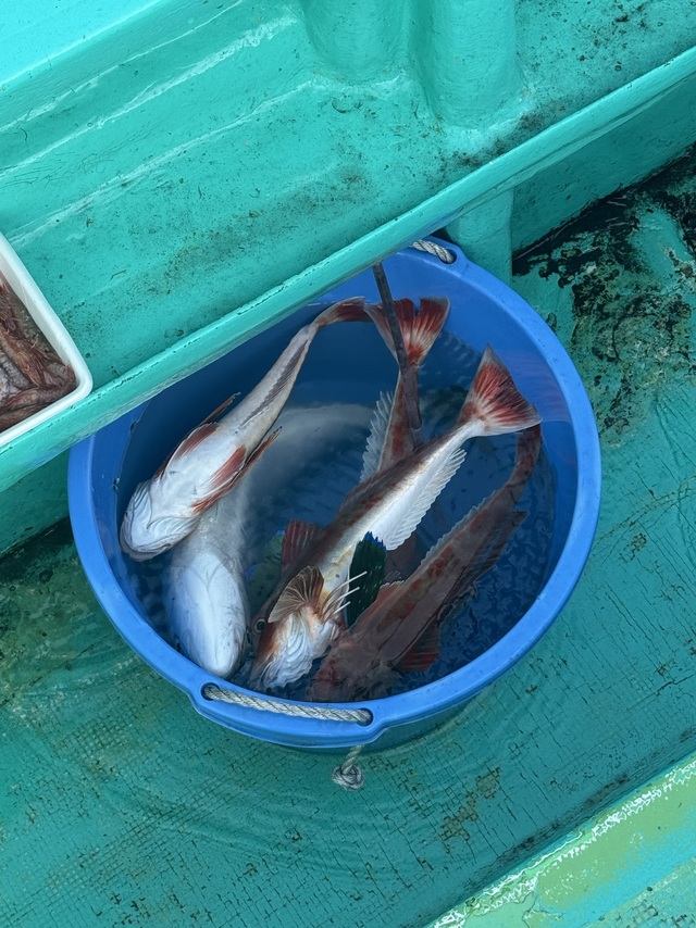 0.30~0.50kg 0~3匹 テンヤ、タイラバ。流れずアタリ少なく苦戦。ハナダイ、カサゴ、ホウボウ。