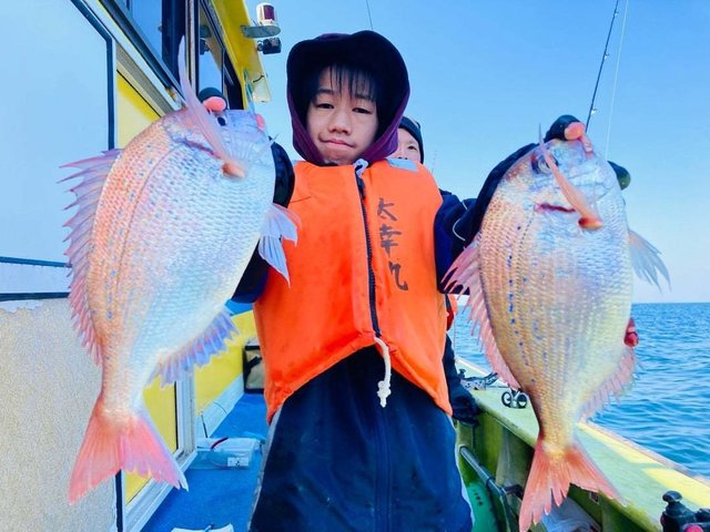 ハタ 真鯛五目出船でした。 中学生アングラーが1日頑張ってくれました^^ トップ2枚!終了間際にダブルヒットで盛り上がり良型のハタをゲットでタイムアップでした! 本日もご乗船頂きありがとうございました。 来週も真鯛五目乗合出船致します! ご都合合えばよろしくお願い致します。
