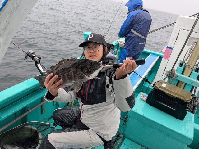 (マアジ)34~45cm 0~4匹 黒ダイ3枚 大アジ6匹 他真鯛ウマズラ 11時までの釣果! 前半、風と潮が逆で… 船が止まらず、苦戦! 初日にしては、良かったです?