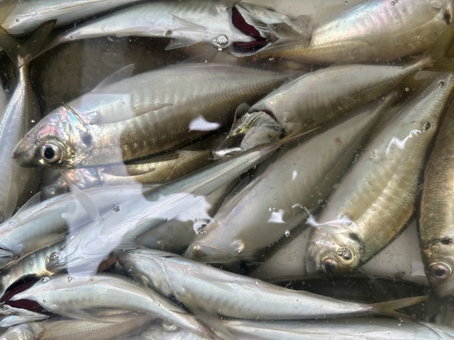 (マアジ)26~43cm 0~13匹 アマダイ 26~33cm 0~1匹 ハナダイ 28~30cm 0~1匹 サバ、カイワリ、イトヨリまじる。