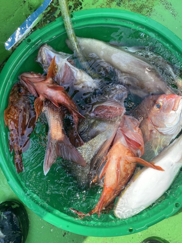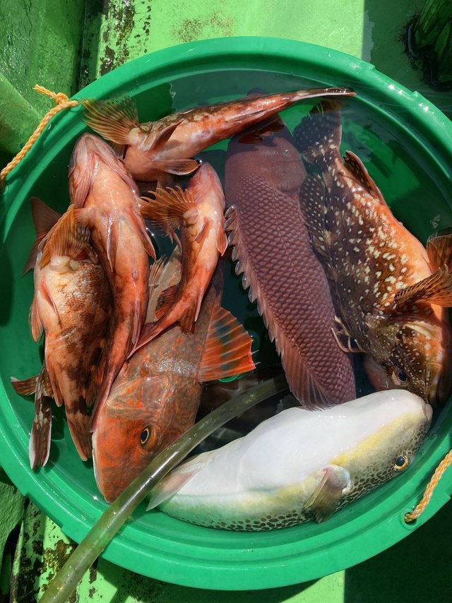 (マアジ)25~38cm 5~20匹 ハナダイ 0.40~0.80kg 0~1匹 アマダイ 28~38cm 0~1匹 サバ 30~40cm 3~10匹 ウィリーアマダイ五目ハナダイ0.4~0.8㎏0~1枚アマダイ28~30㎝0~1枚アジ25~38㎝5~20匹サバ30~40㎝3~10匹ニジハタEtc ターゲットのハナダイアマダイイトヨリ始めゲストのアジサバニジハタとお土産にも恵まれ楽しんでもらえて嬉しい1日でした!