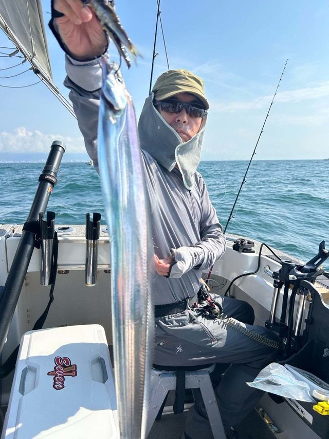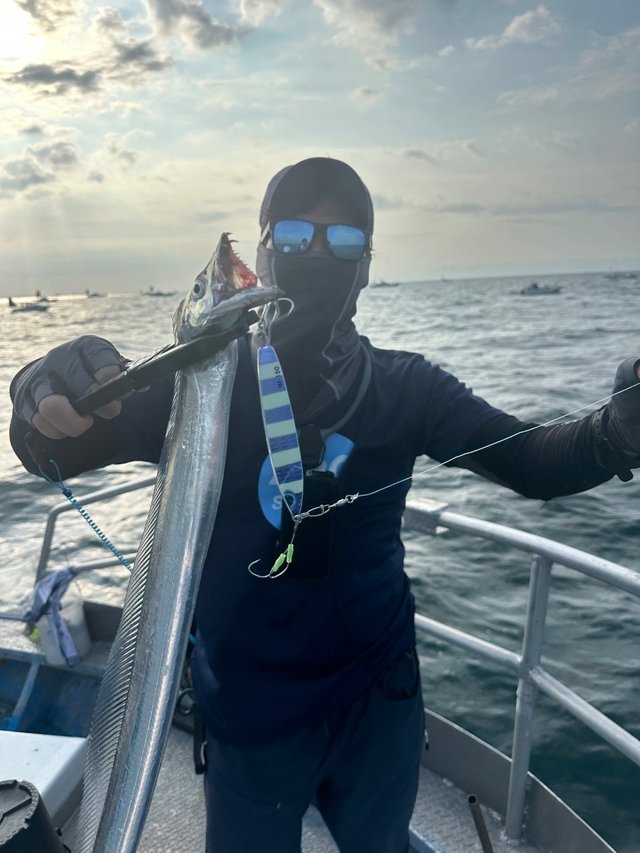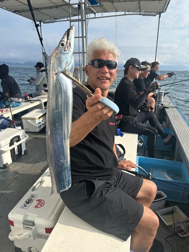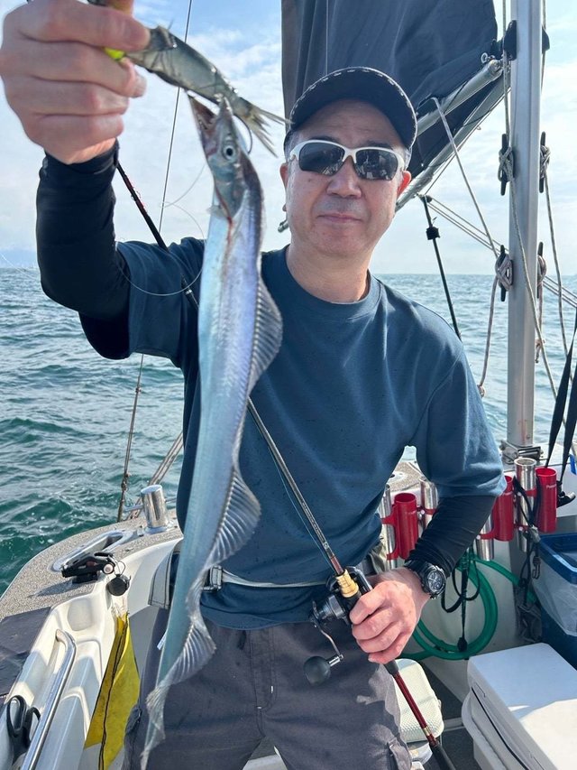 竿頭10匹 中潮。 ご乗船いただいた皆様、お疲れ様でございます。 <タチウオ便> ◾️テンヤ◾️ TOP10本、 2番目9本、 3番手8本✖️3名様、 朝の冷え込みは少しだけマシになりましたが、12月なので季節は冬ですね。 寒くなりましたので、防寒対策の準備をお願いします。 また個人生簀から水が流れるので、長靴や防水の靴等を履いてお越しください。 昨日と同じく浮棚プチモーニングから始まりました。 状況が一変する事に期待しましたが、流しごとにだんだんと渋くなりました。 顔を見合わせると皆さん苦笑い。 厳しい釣果でもありがとうと言っていただきありがとうございます。感謝。 また潮のよい日にリベンジお願いします。 本日は厳しい中、最後まで頑張っていただきありがとうございました。 お身体冷えていると思いますので、お風呂等でゆっくり温もって風邪などひかないようにされてくださいね。 またの御乗船、心よりお待ちしております。