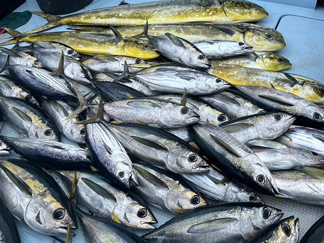 狙う魚はマグロ系、サワラ、シイラ、カジキなどです。釣れた魚は解体までサービス内で行ってくれます。ぜひシンコハルで沖縄の釣りをご堪能ください!