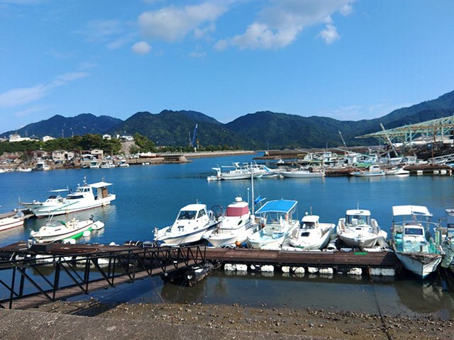潮矢丸Ⅱは厳島を目の前にした塩屋漁港から出船します。