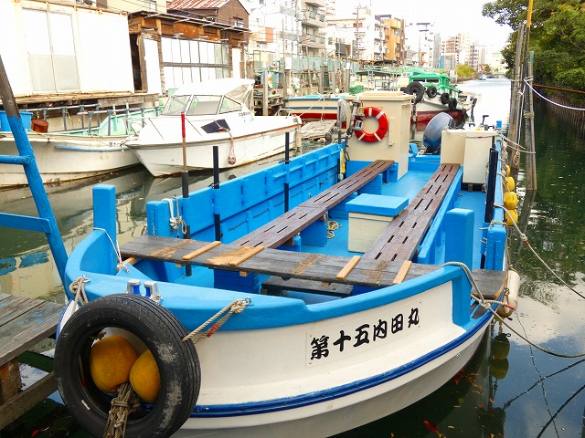 越中島川には多くの釣り船が存在する。 多くの釣り人が船釣りを楽しんでいる。 よく釣れる魚は、がある。